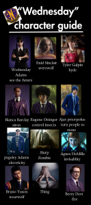 Season two of “Wednesday” is about a girl named Wednesday (played by Jenna Ortega who you may know from the disney show “Stuck in the Middle”) from the Addams family movies. She goes to a school named Nevermore, a school for outcasts or kids with unique abilities.