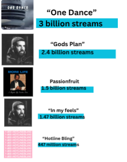 Drake is the first artist to reach 50 billion streams on Spotify,hold the chart for the most Hot 100 songs, and the most No.1 albums on the Billboard 200 for solo songs. On top of all of this, Drake is the most streamed